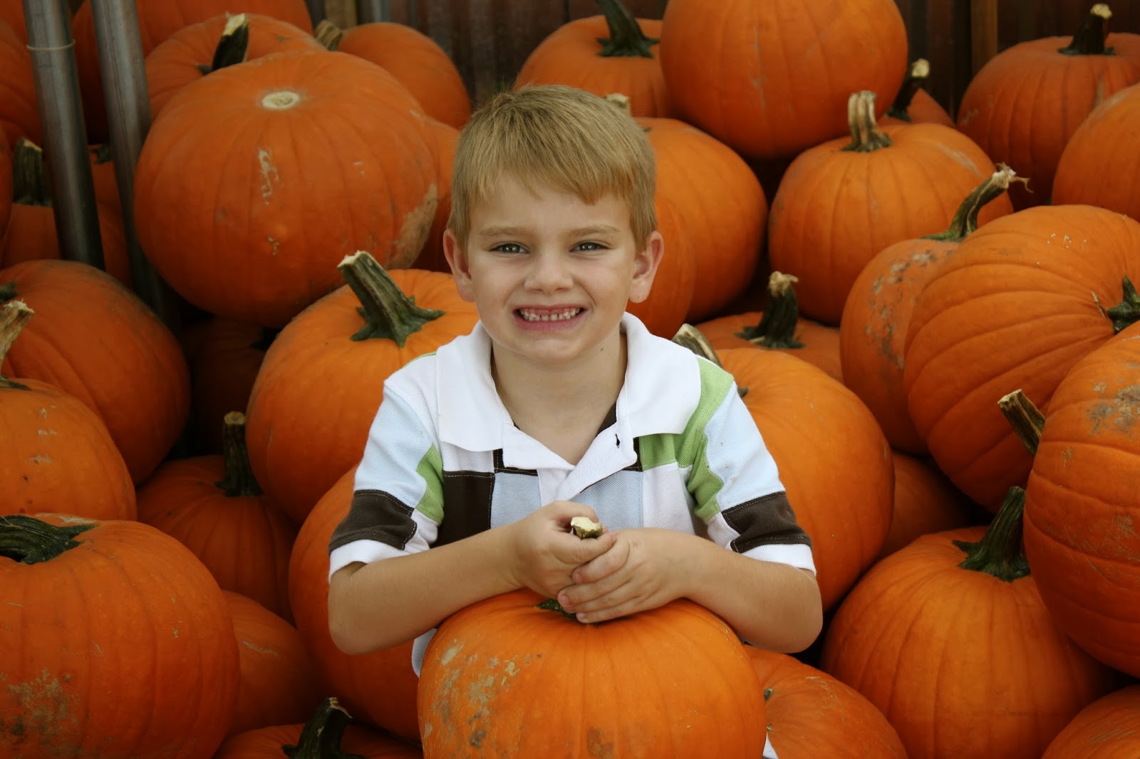 We picked out pumpkins at Sligers when we took pictures, but waited to carve them until closer to Halloween. Will wasn't too sure about the icky inside of the pumpkin!
